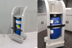 - Seguridad: Equipado con accesorios de seguridad como grifos y válvulas resistentes a químicos, asegurando un entorno de trabajo seguro.